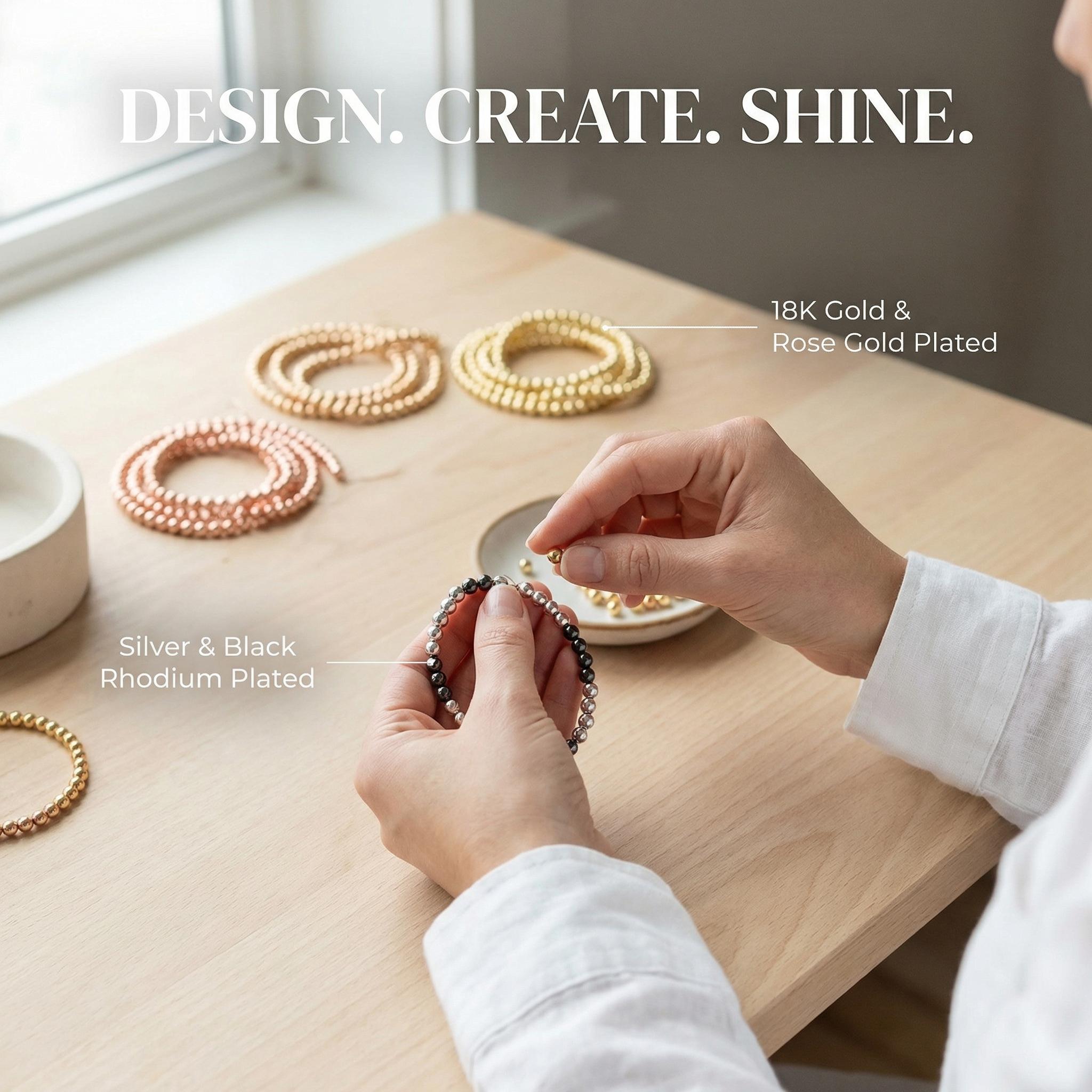 Description: Silver, 18K Gold, Rose gold, and Black Rhodium Plated over Brass